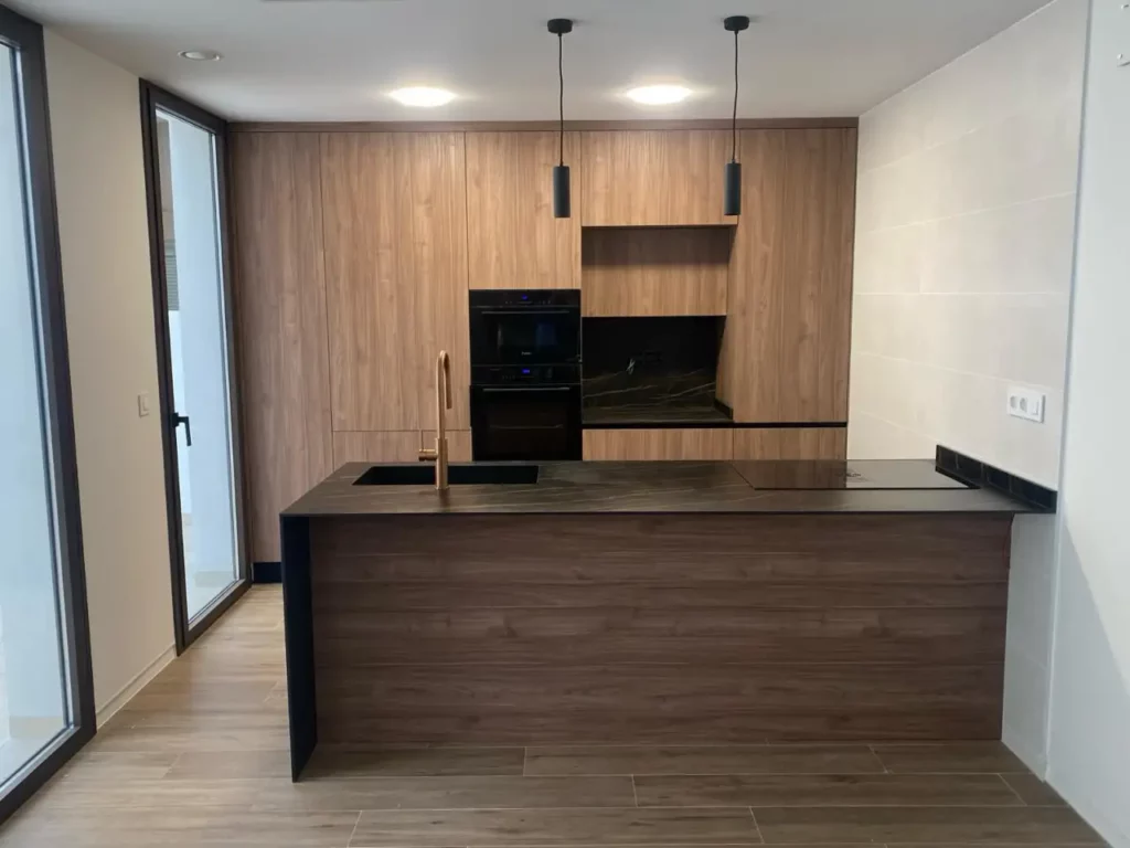 El núcleo principal de esta reforma de vivienda de planta primera, es la terraza central, donde recaen todas las estancias que junto a los grandes ventanales hacen que el espacio quede integrado dando mayor amplitud a las estancias.